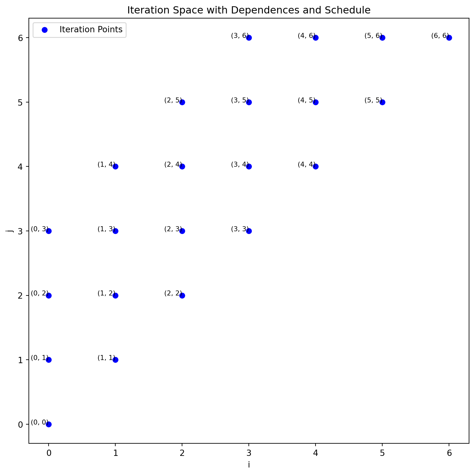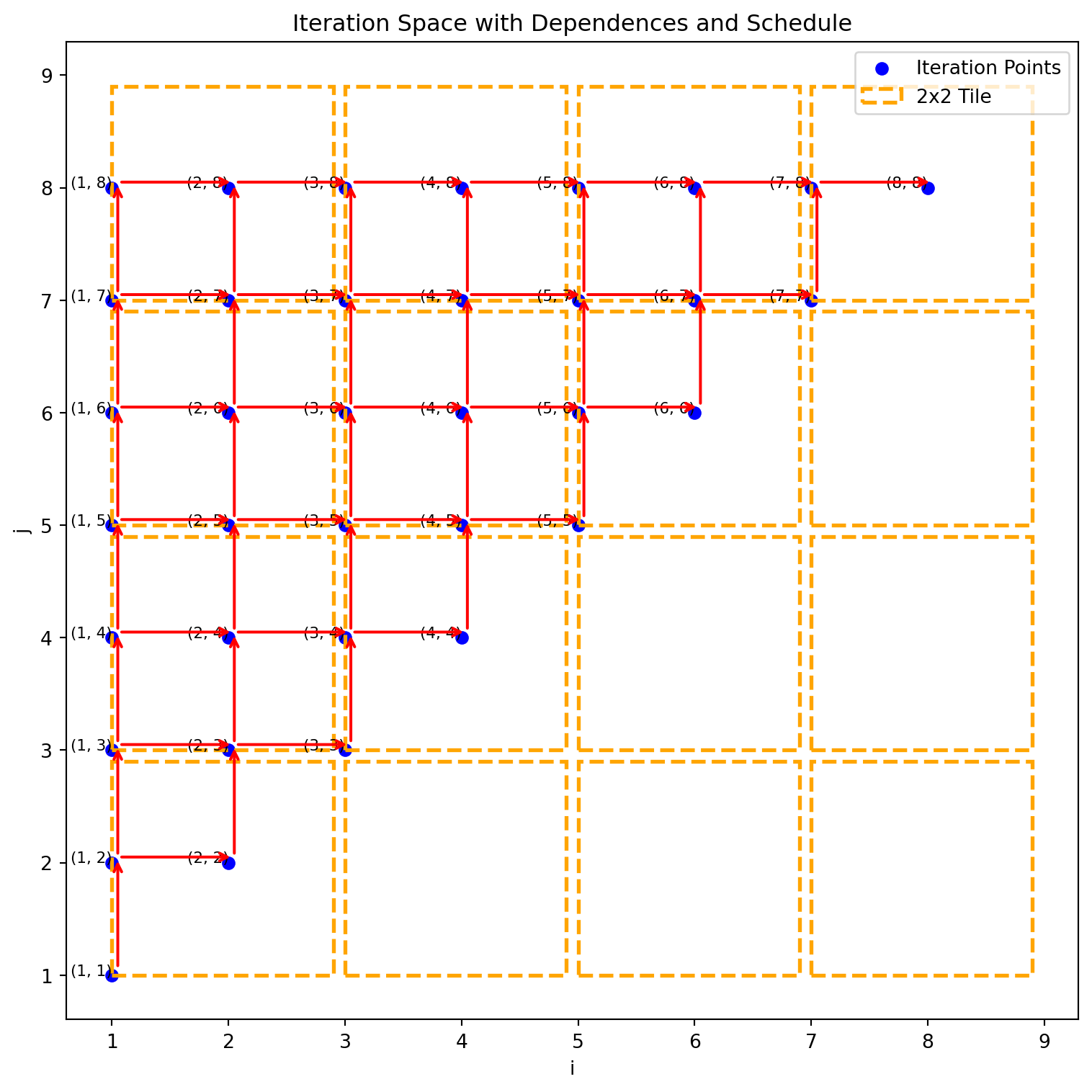 i + j (sum of indices).i + j constant) can be executed in parallel since they are independent.# Organize the iteration space by diagonals